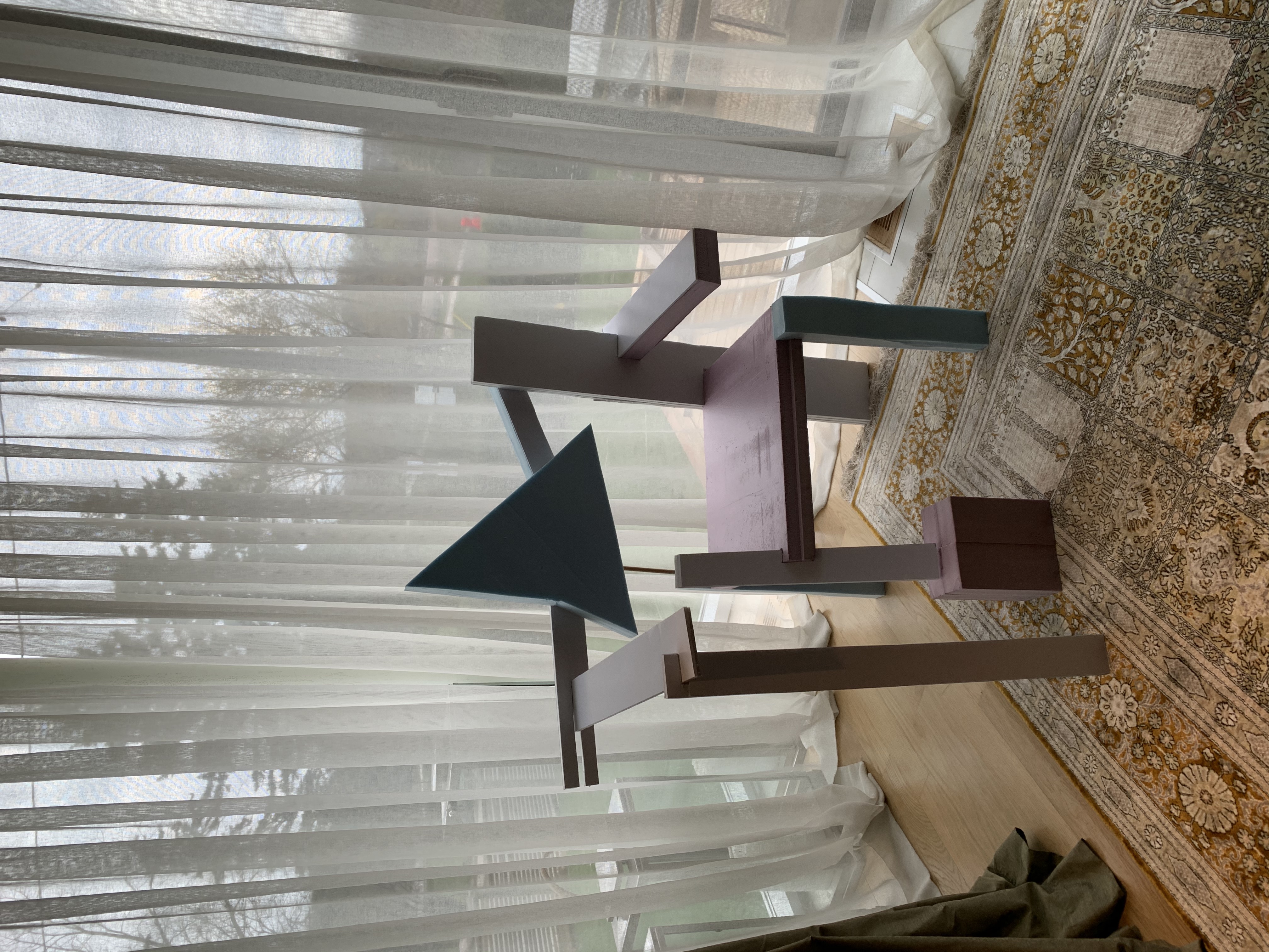 This full scale study model of a chair highlights how strong geometric forms can create comfort through the visual connection and the coming together of all the different shapes. The result creates a visual harmony and unity of individual objects.